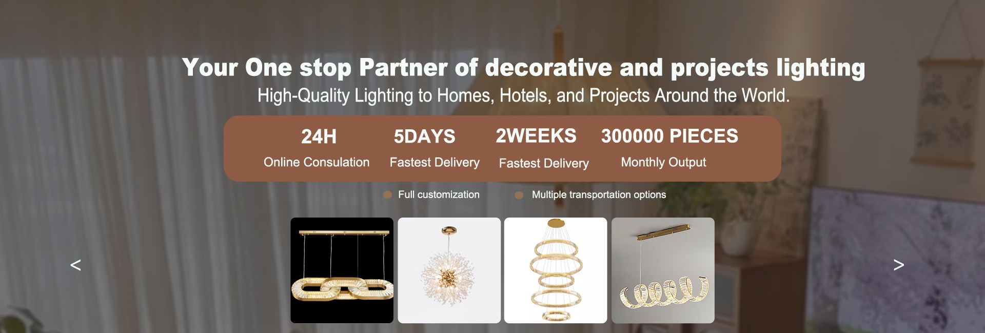 المنتجات الرئيسيةالثريا ، مصباح قلادة ، إضاءة فيلا ، مصباح الجدار ، مصباح الطاولة